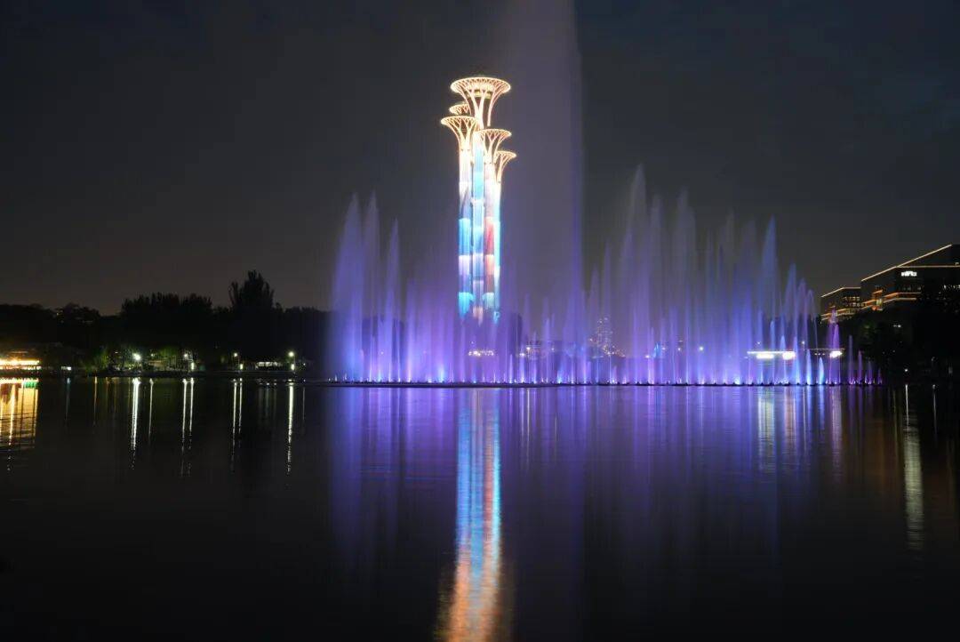 以科技言语从头注释天然朝气。奥林匹克塔灯光秀超越视觉震动,最高达高30米,取“鲲鹏”同逛,