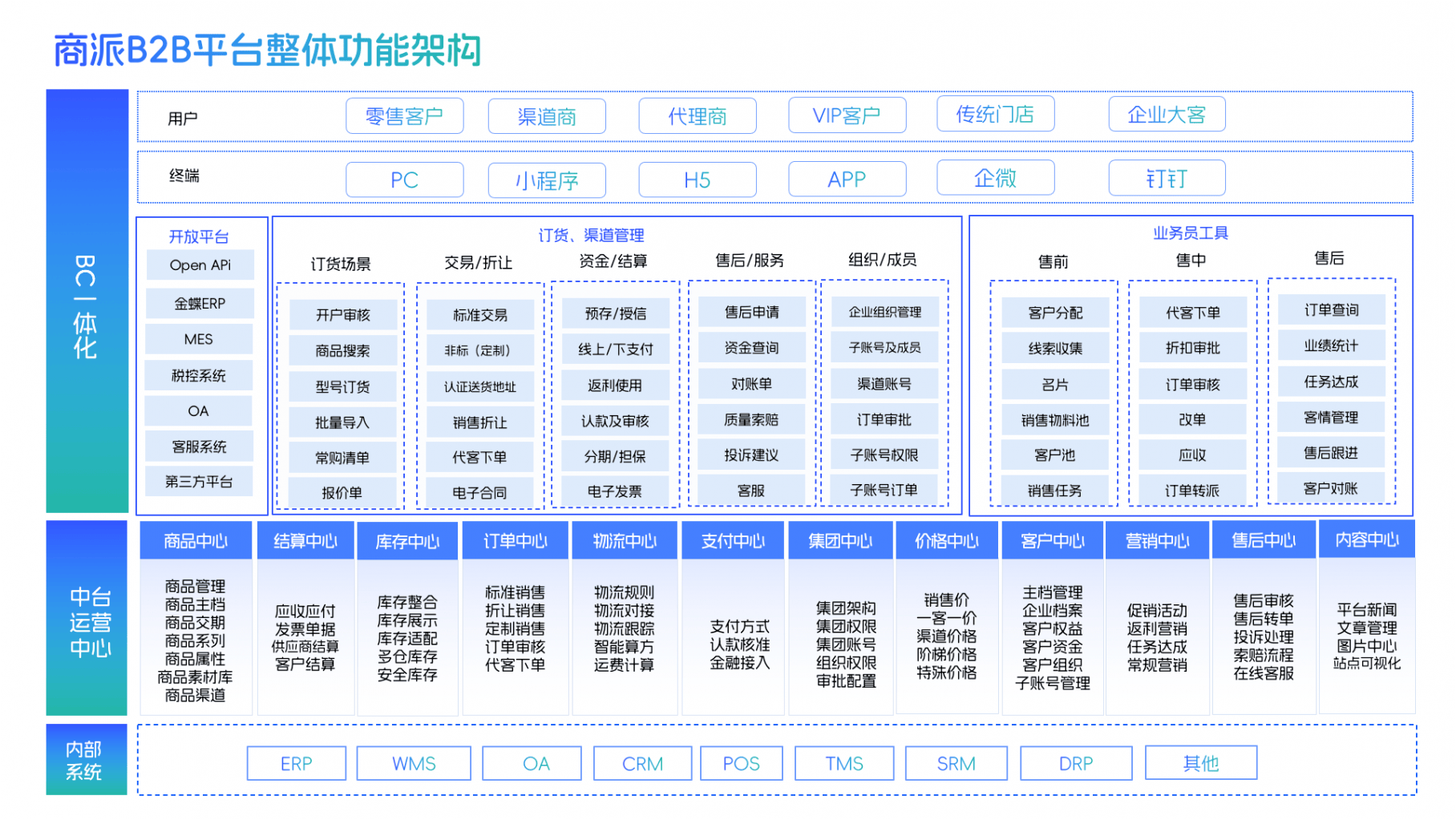 具有高扩展性和不变性,支撑多商家入驻的平台型运营)以及SB2B系统(强调供应链上下逛协同)。推进供需两边沟通、买卖。